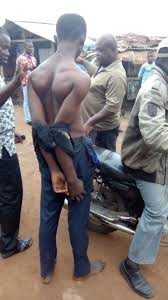 22 year old Johnson Makinde was apprehended by in Lagos for alleged stealing.