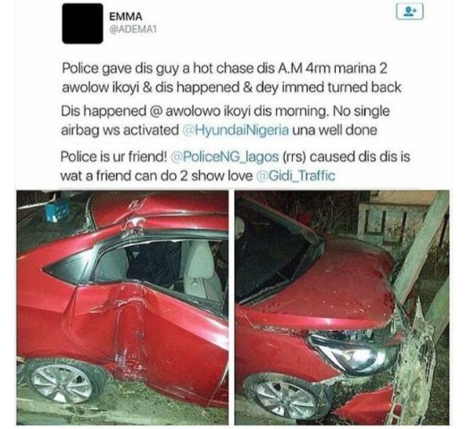 This supposedly this happened today. But why run from the police - all the way from Marina to Ikoyi. Hope he wasn't badly injured
